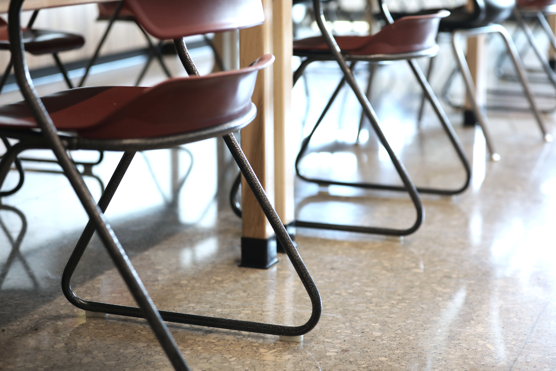 Our StrongTread system is a popular choice in schools as well as nearly any other setting that requires durability, cleanability, and functional design. These elements made StrongTread a natural fit in the Adams Central art room, leaving aggregate exposure as their biggest design decision. The Jets chose our Deep exposure, so we ground 1/4″ into the concrete to expose the large stones that form the building blocks of foundational strength. Our Deep exposure offers a terrazzo-like finish with loads of pleasing movement. The result is a beautiful, variegated exposure fit to inspire generations of young, aspiring artists.