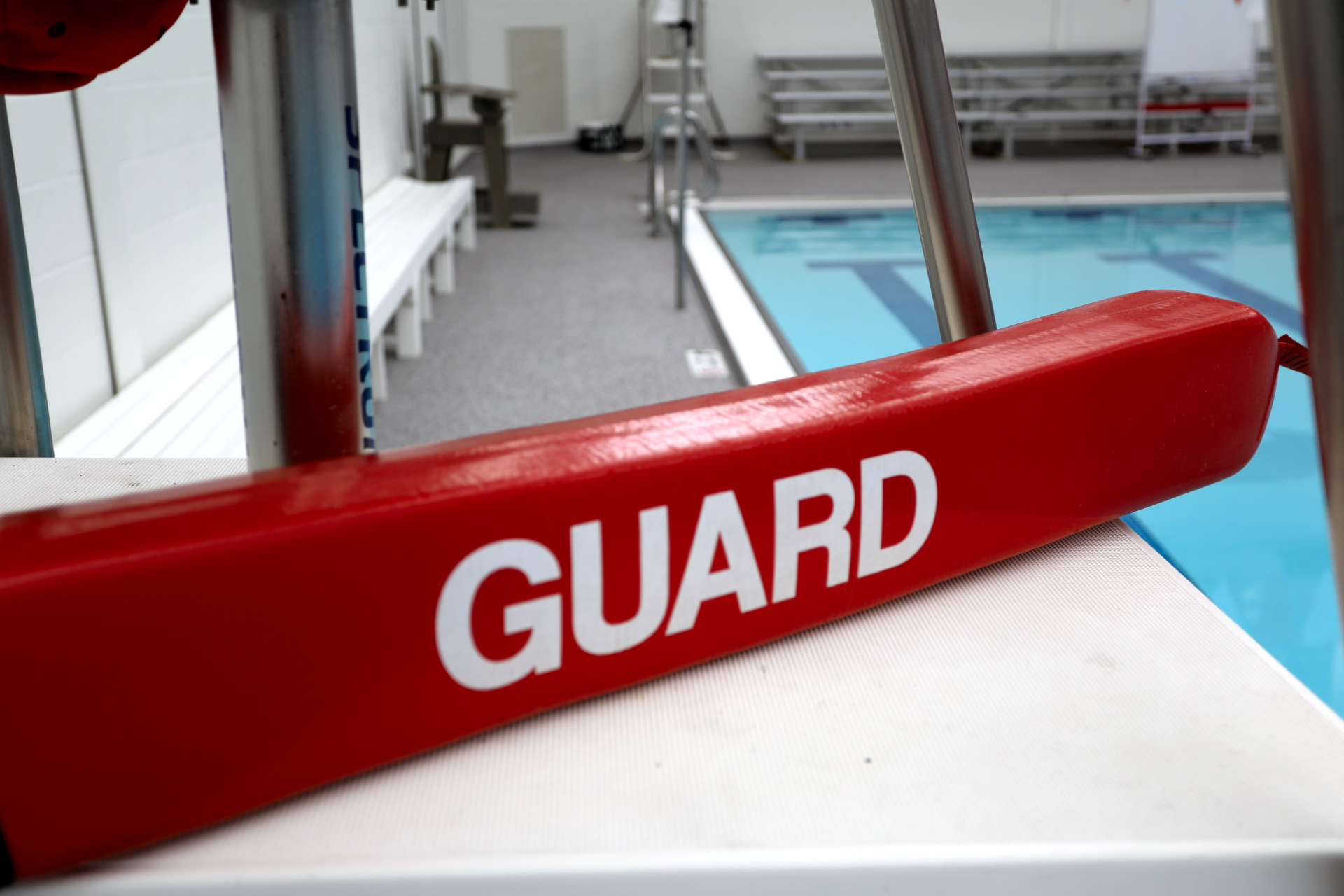DANCER Pool Deck+ is a ready-made system for pool decks and surrounds, offering an even surface and superior slip resistance where safety matters most.  We applied this system around the Adams Central pool, directly over existing tile, which helped the Jets save on renovation costs, cut down the time needed to deliver a finished pool deck, and eliminated the noise, dust, and debris associated with tile removal.  The thick epoxy body coat, chip broadcast, and satin finish with added grip eliminate telegraphing from tile grout lines underneath, resulting in an even, grippy pool deck in a custom blend of chips that incorporates the Adams Central school colors. DANCER Pool Deck+ is a fast, cost-effective way to add a no-slip surface around existing pool decks in an unlimited variety of design options and colors.