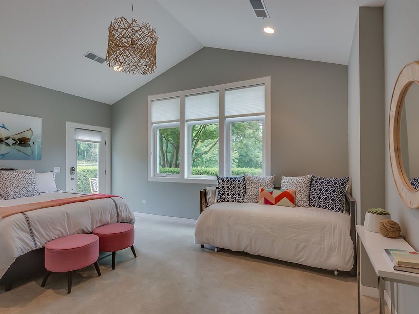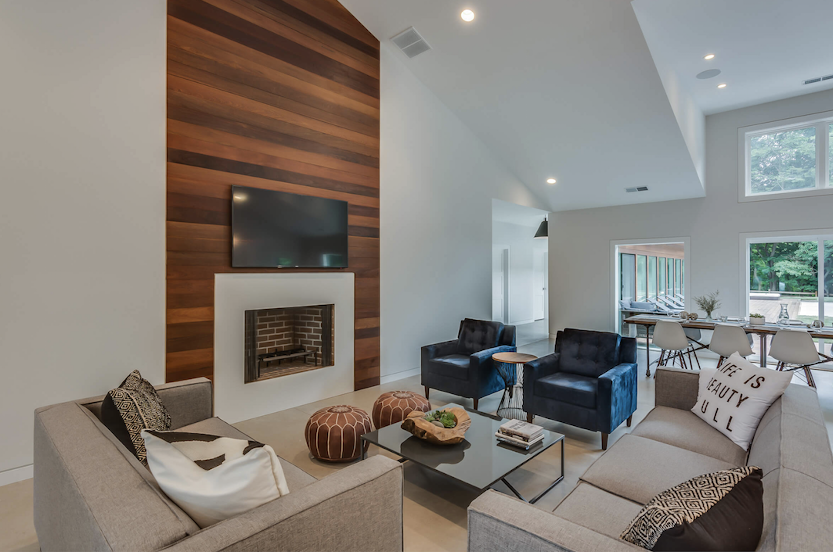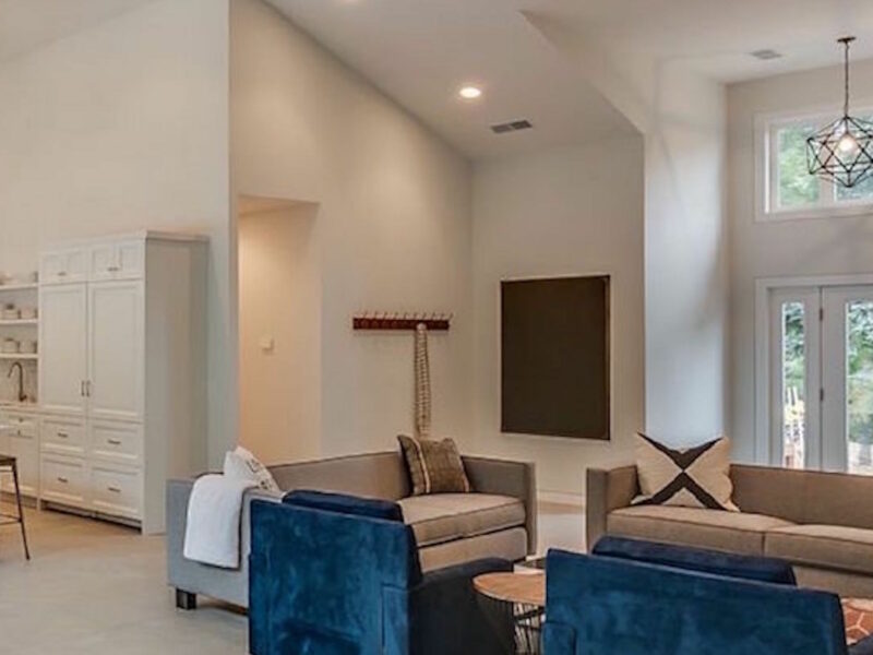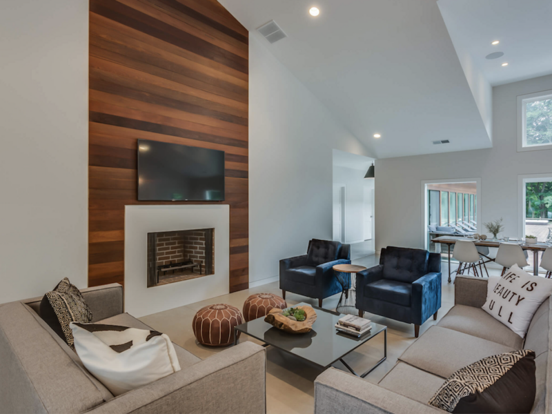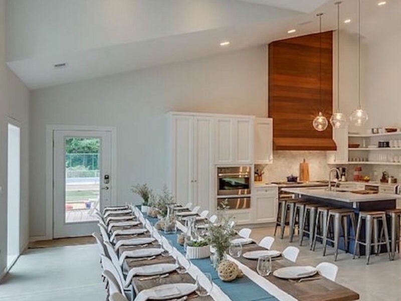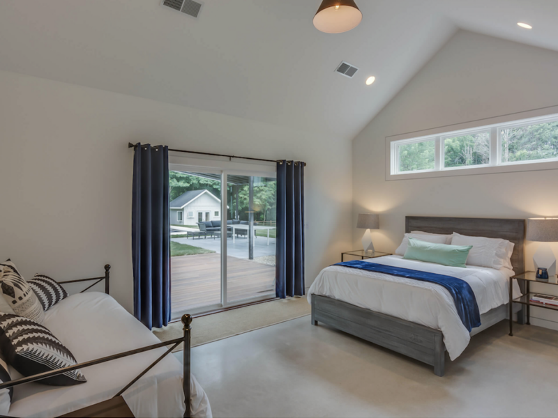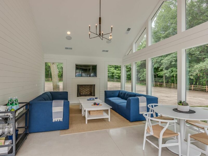 Apple Blossom Resort is an extensive property that is the definition of luxury vacationing in the Midwest. Located just five minutes from Lake Michigan and able to accommodate 44 people, this resort is the perfect place to take a family excursion. The property includes three separate houses; the main house, the guest house, and the cabin. There is a pool, hot tub, three fire pits, tennis and basketball courts, and a fitness room. The structures feature 11 bedrooms and 12 bathrooms between them. Dancer Concrete Design contributed to the space by polishing the concrete floors in the large main house.