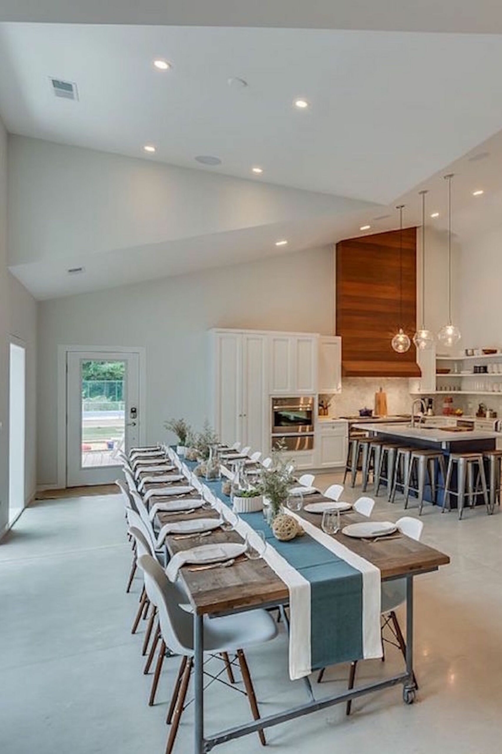 Utilizing polished concrete in a space is a great way to make the floors stand out while still complimenting the other natural features of the structure. In the case of Apple Blossom Resort, natural features include exposed wood in the kitchen and living room, a 20-foot wooden dining room table and other natural furnishings, and the outdoor scenery that can be seen from large windows in all rooms. We love natural, polished concrete flooring because the floors provide a subtle background to the features of the house while still making a statement in their own way.