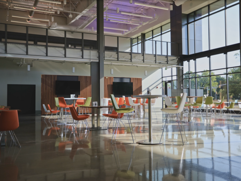 American Technology Components (ATC) built a new headquarters for their custom electronic manufacturing in Elkhart, Indiana. DANCER installed seven of our systems throughout the facility, with over 130,000 square feet of flooring, including polished concrete, epoxy floor coatings, sealed concrete, and vertical overlays. We worked with ATC early in the building phase to select flooring, stairway, and overlay finishes. These durable systems complement the design and serve ATC’s whole team for years to come.