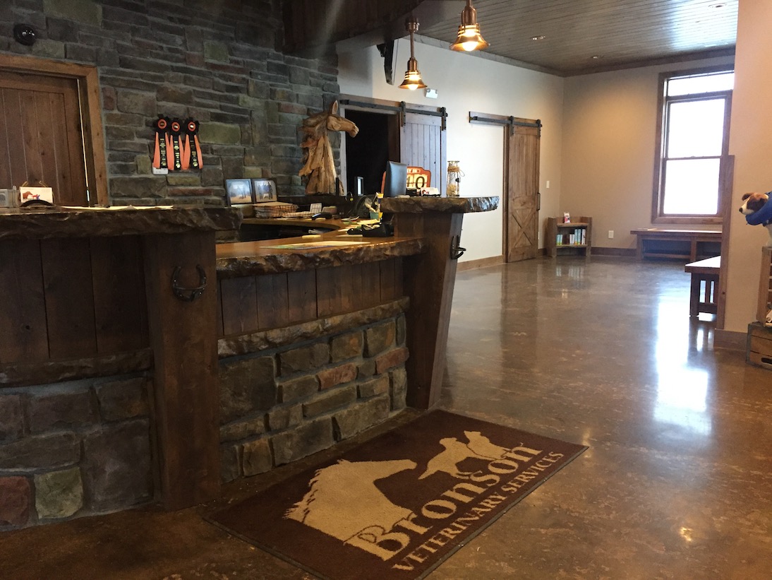 Bronson Veterinary Services is a full-service animal hospital located in Coldwater, Michigan. They accommodate animals from small dogs to horses, and provide services ranging from acupuncture to dental care to emergencies, and also offer a pharmacy. Staff members at Bronson have an impressive 60 years of experience between them. This was our second flooring project at Bronson Veterinary Services – you can view the first project here.