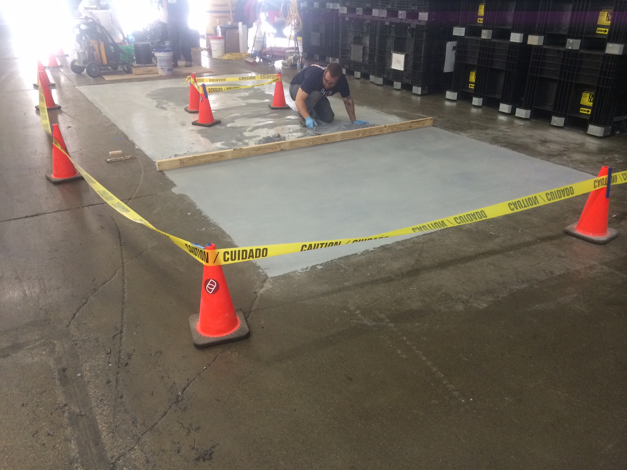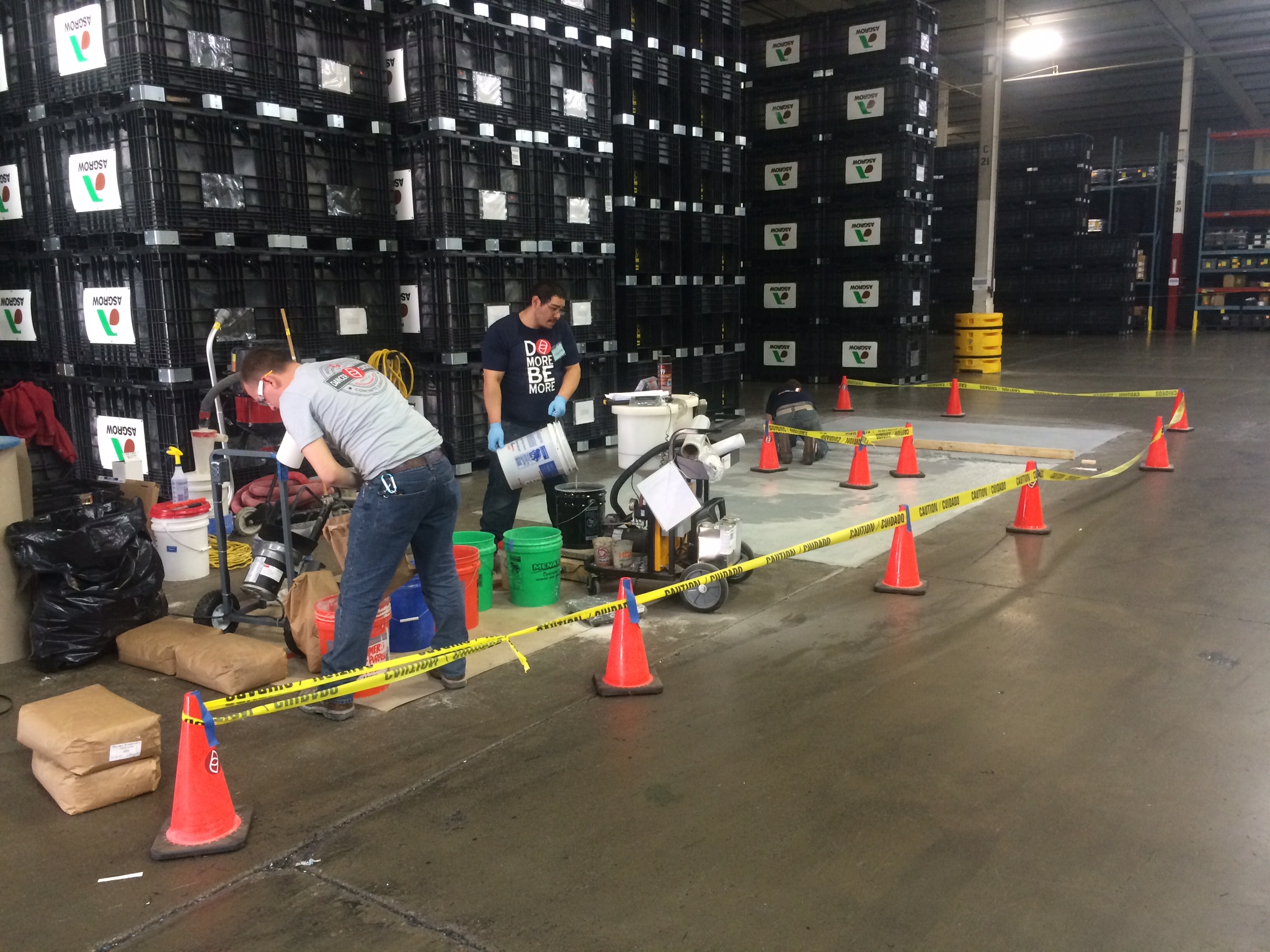 In order to ensure that the cracks didnât expand further, Dancer Concrete Design evened the edges, created a consistent depth and cleaned up the cracks as much as possible. We then used a medium gray-colored polymer to fill the cracks and control joints that were repaired. Because of the location of the cracks, we were able to work while the manufacturing plant was running.