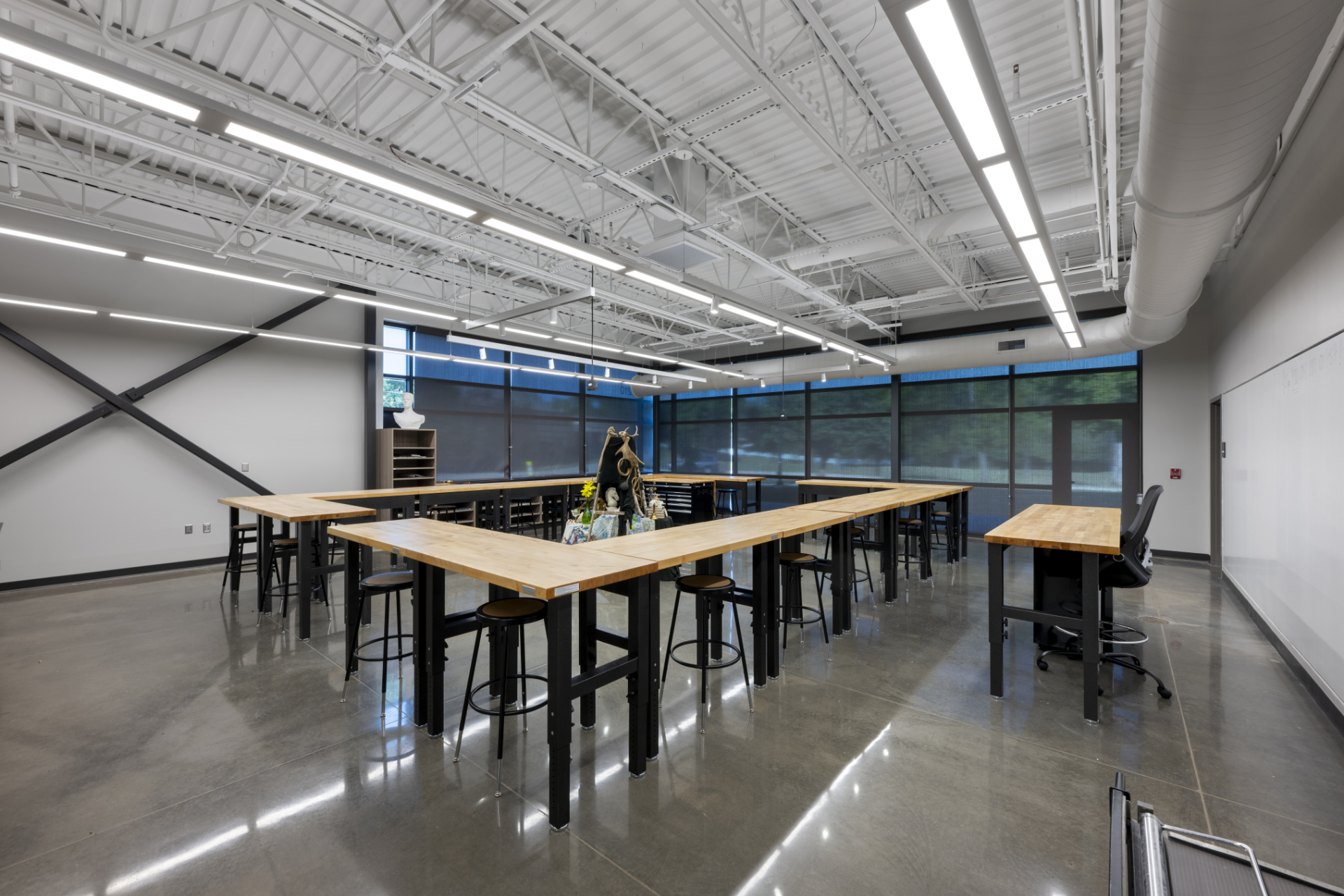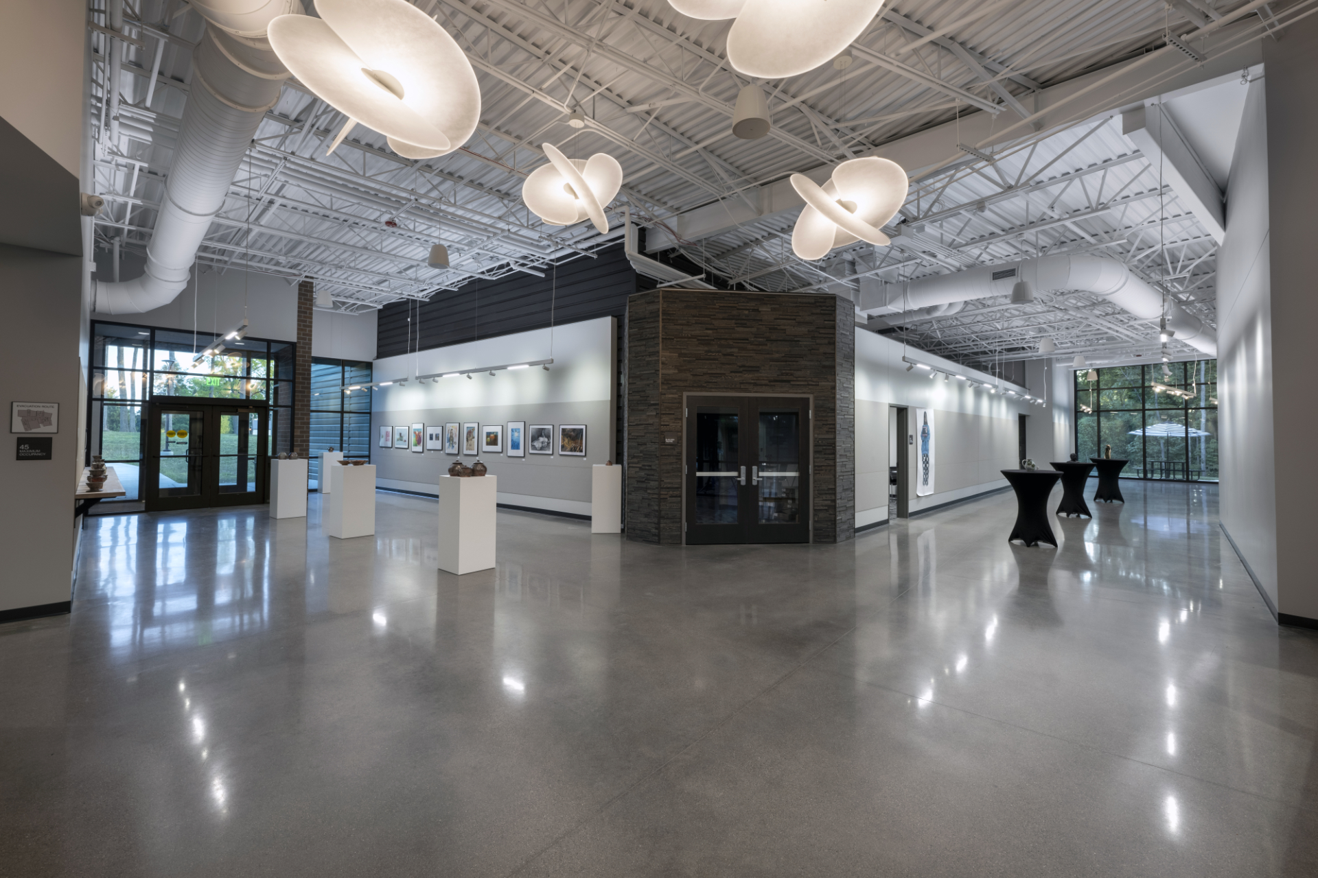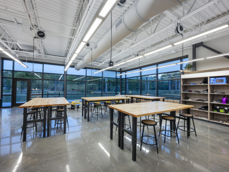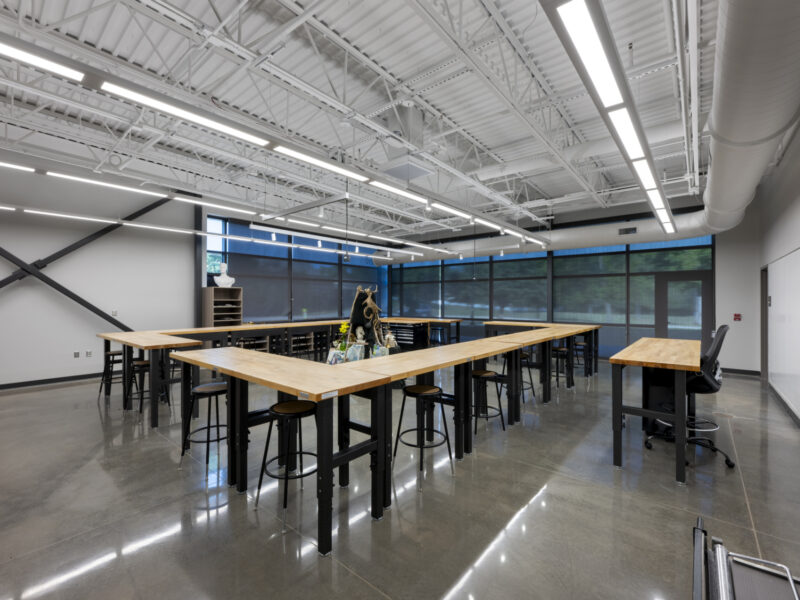 Canterbury School’s Fine Arts Center is a new 18,000 square-foot educational space for visual and performing arts for their Academy of the Arts program. DANCER installed our StrongTread Classic polished concrete system for the main gallery space and hallways. Our StrongTread Modern system was chosen for the 2D and 3D visual arts classrooms, scene shop, dressing rooms, and theater storage. Polished concrete is a perfect canvas for this space, with a balance of aesthetics, simple maintenance, and an affordable lifetime cost of the building.