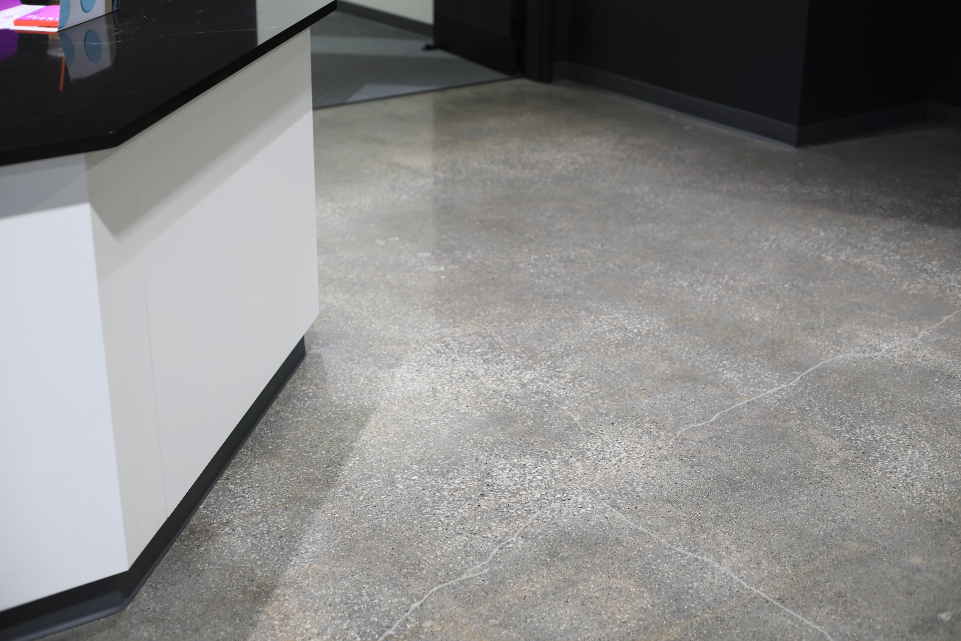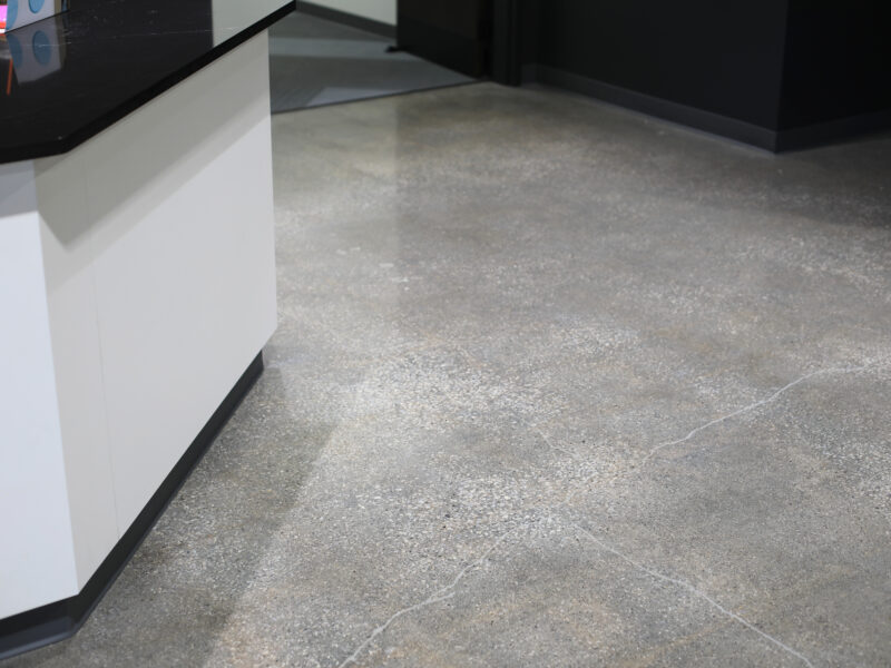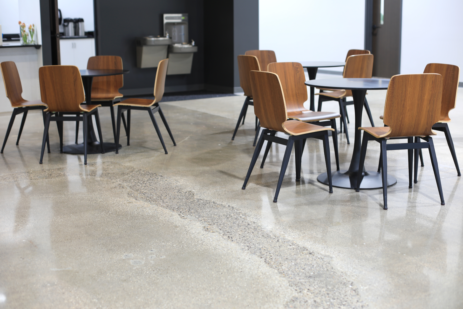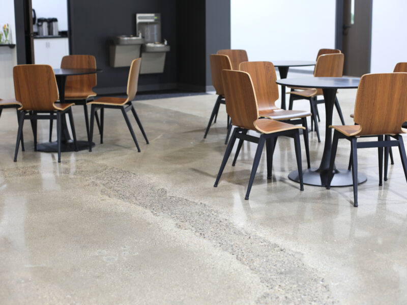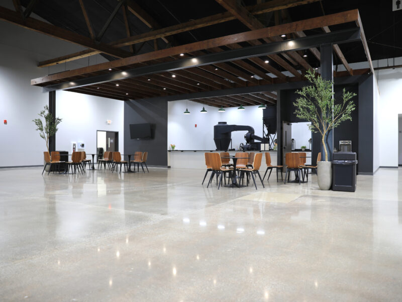 City Church Fort Wayne has opened the doors to their new home base on the south side of Fort Wayne, Indiana. City Church purchased the former Scott’s grocery store to renovate for their growing community, and DANCER polished the concrete floors in the central lobby and gathering space. Our StrongTread Polish – Remodel system was installed on the existing concrete slab, which included extensive patching and grinding to level the floor. A unique characteristic of the floor is a trench, possibly made for the former grocery’s stores data cables, that runs from the front entrance to the open kitchen on the opposite side of the open gathering space. After patching and grinding, the floors were finished to a 400-grit, satin finish.