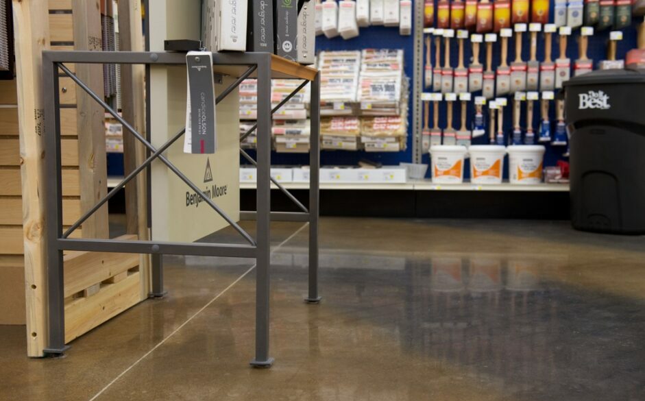 Connolly’s Do It Best Hardware was looking to rebrand their paint department. They recently started carrying higher-end paint and wanted to remove the VCT tile and laminate floor to make way for a floor that highlighted the quality of their products. Dancer Concrete Design worked during the night so that the store was able to remain open during regular business hours.