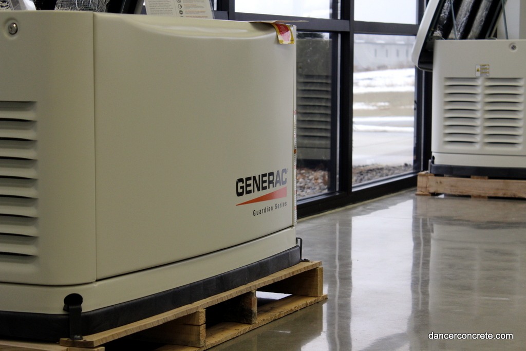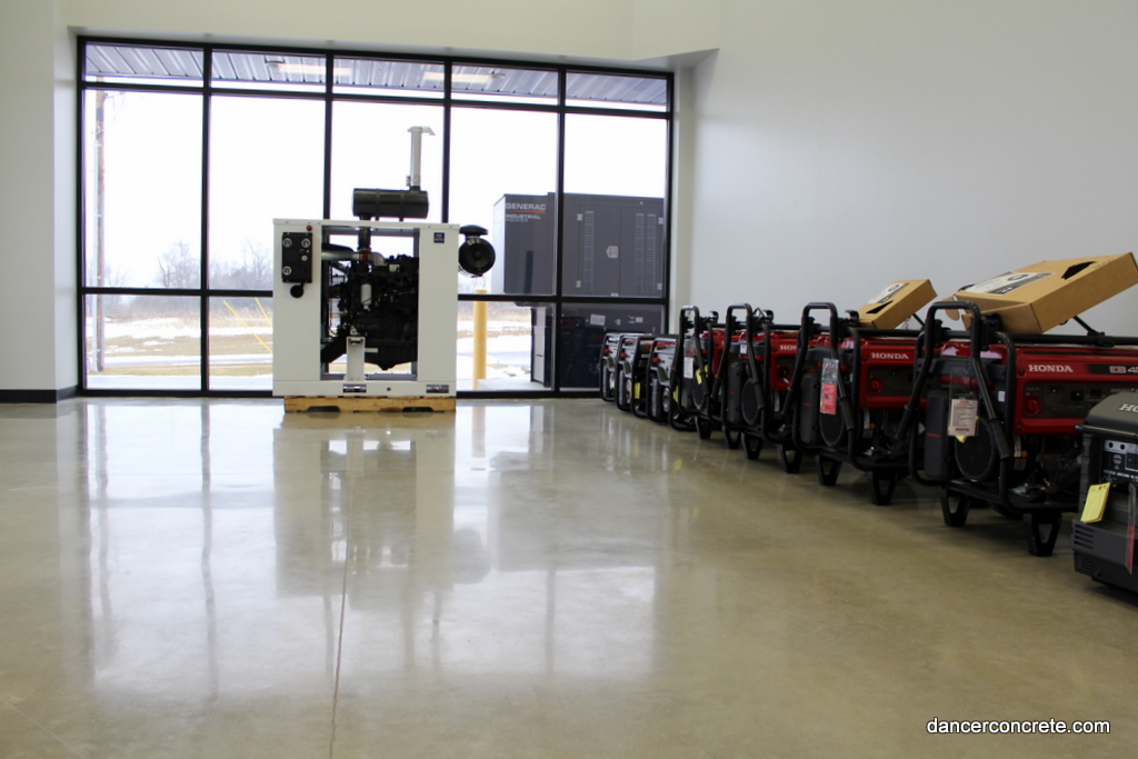 Evapar is a service provider of power products specializing in generators, industrial engines, and compressed air systems. They are a fellow Fort Wayne business. Because they handle both sales and service, they needed two different flooring solutions for their building. The main salesroom would receive a polish and sealed treatment while the parts and service area would have the concrete cleaned, densified, and then burnished.