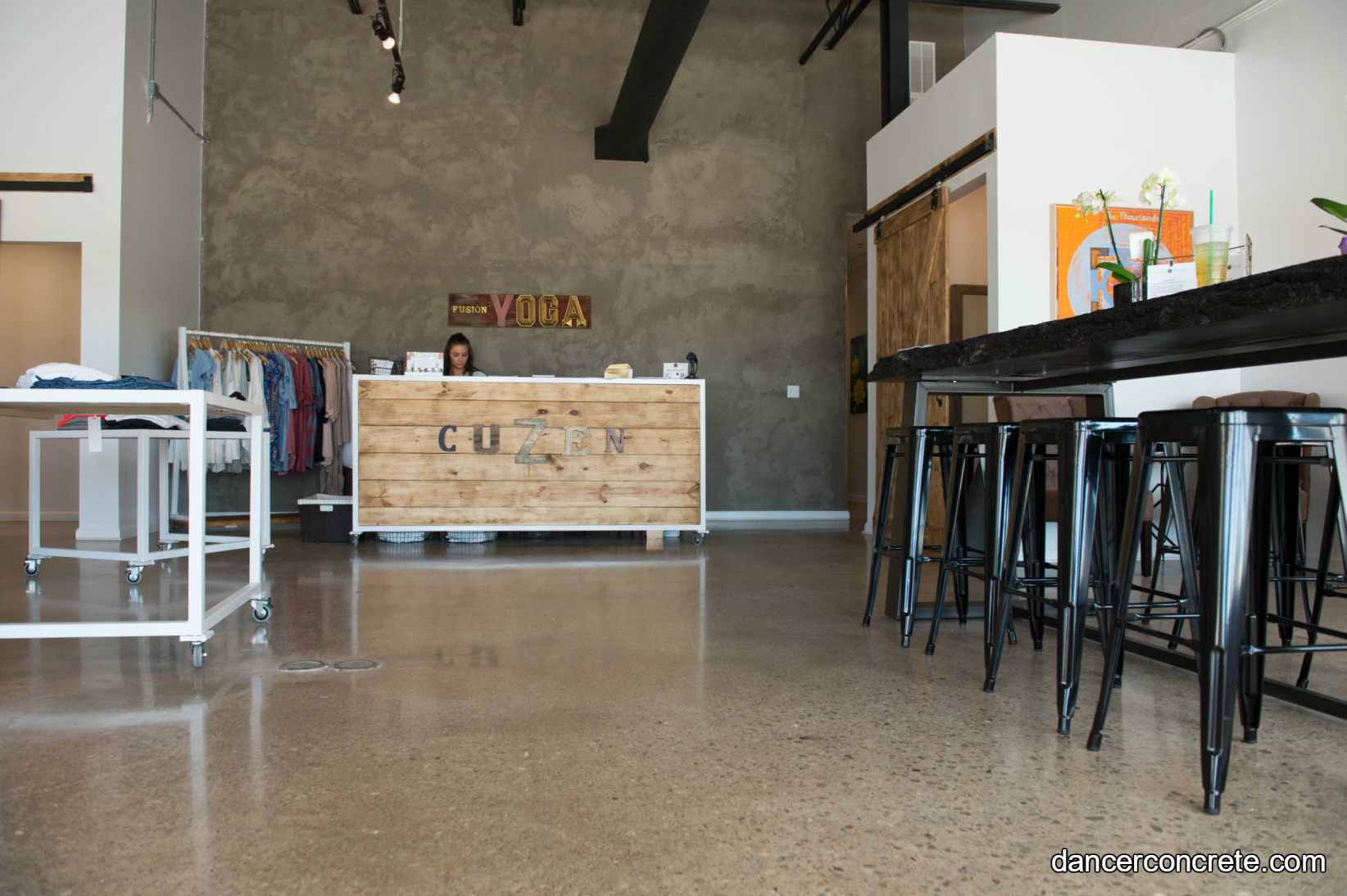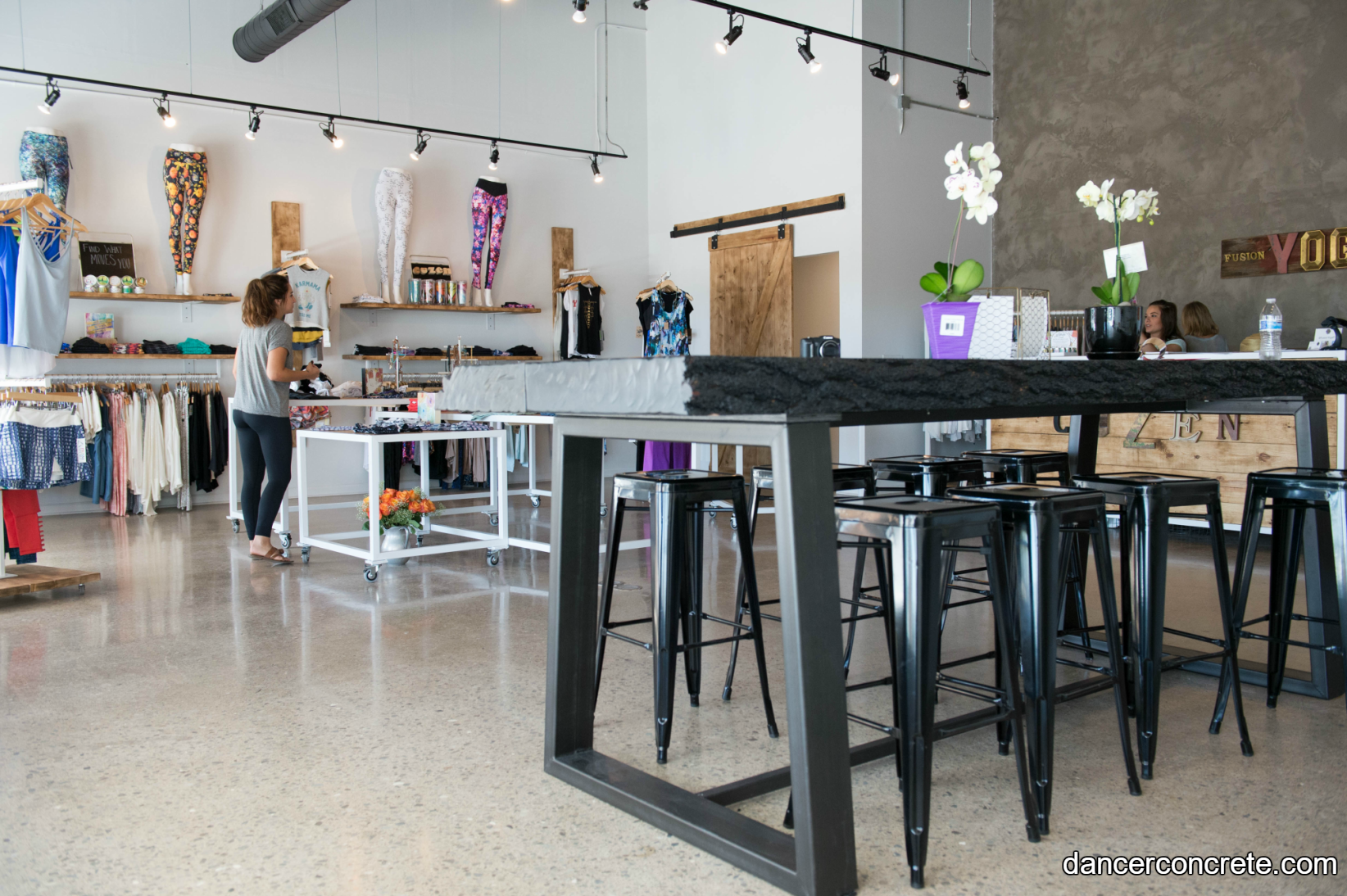 Dancer Concrete Design recently helped Celeste Sexton, owner of Fusion Yoga, achieve the look she envisioned for her new yoga studio and boutique in Southwest Fort Wayne. With seven yoga instructors and classes offered every day of the week, Fusion Yoga has something for everyone. They offer a variety of classes ranging from hot fusion yoga to piloxing to gentle outdoor yoga. There is also a boutique, CuzenClothingin the front of the building where customers can buy yoga apparel and accessories before their classes. They offer Pure Body Juicesa new, local Fort Wayne company specializing in nutritious drinks.