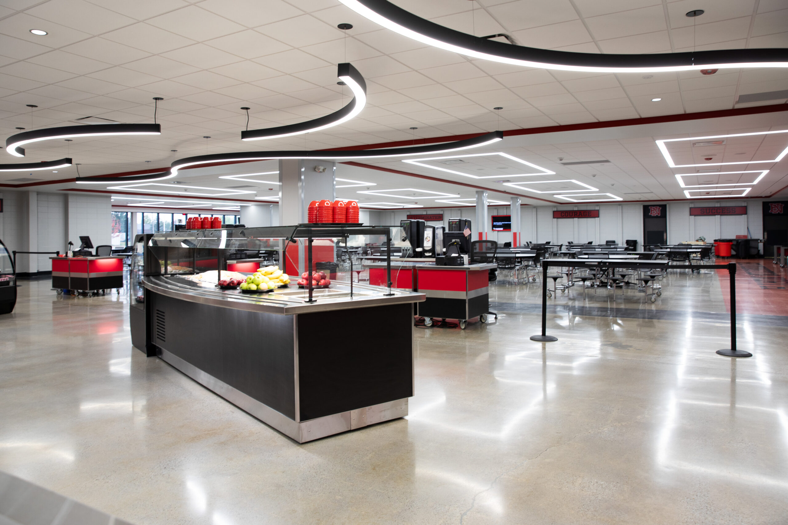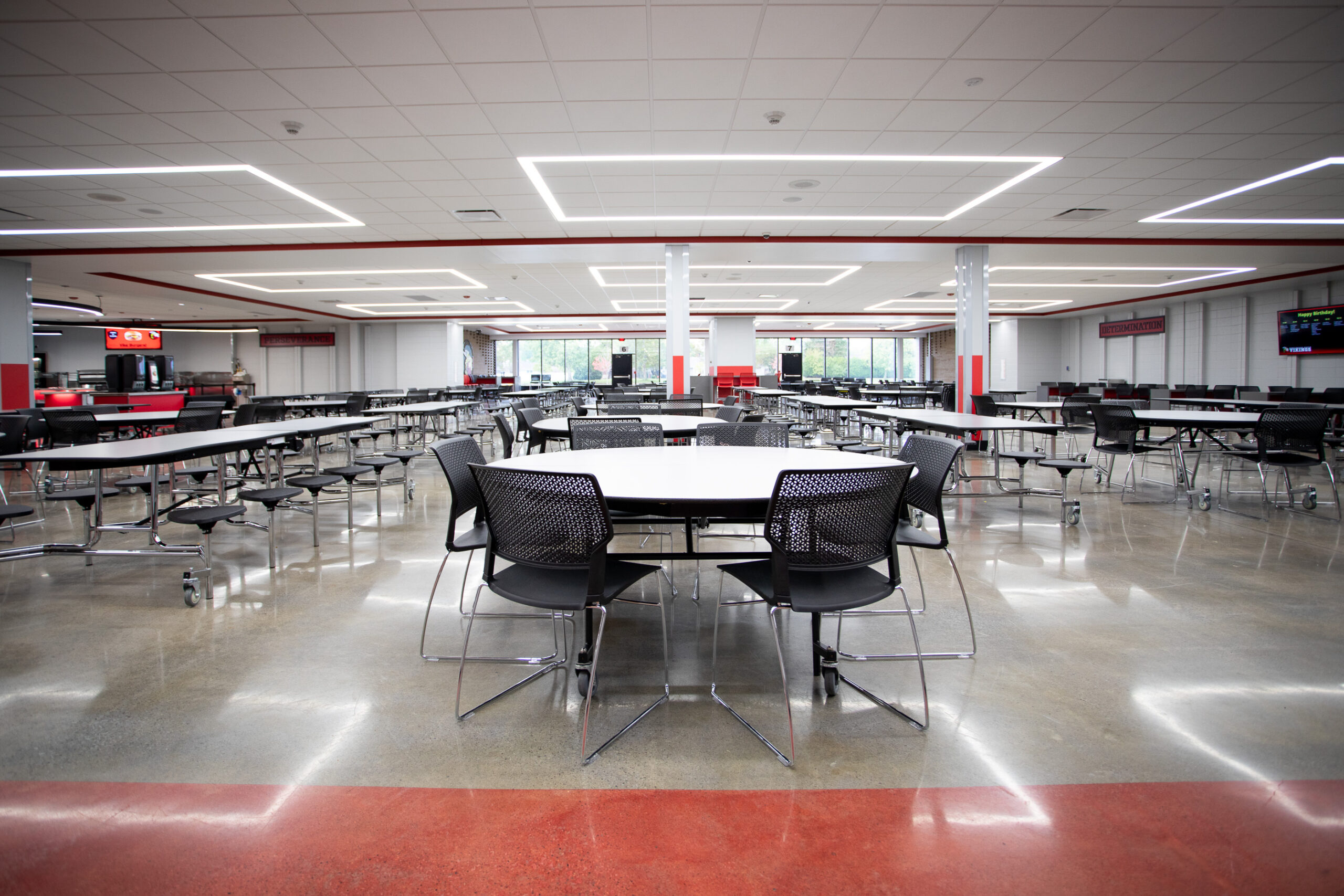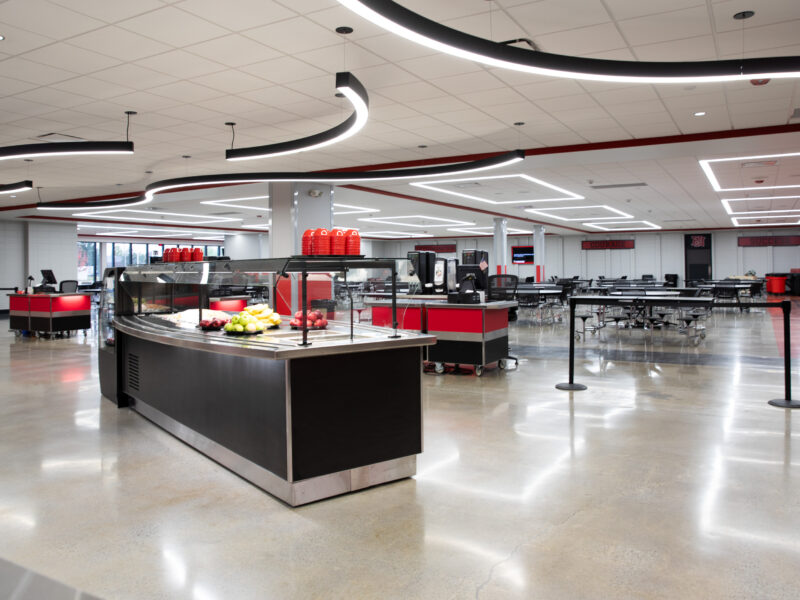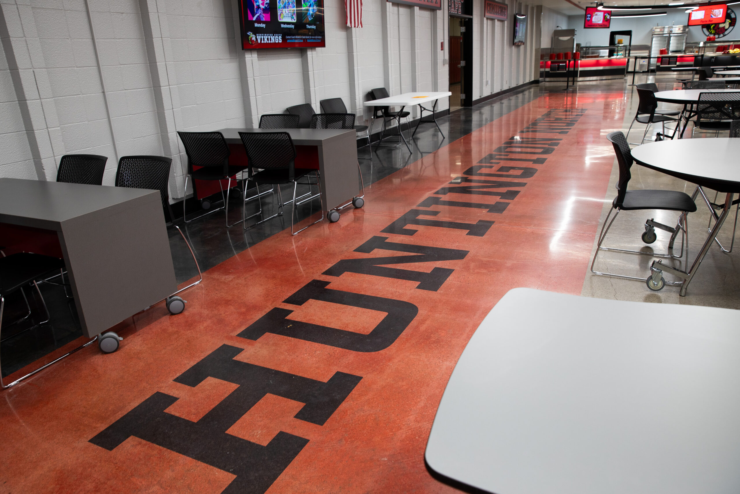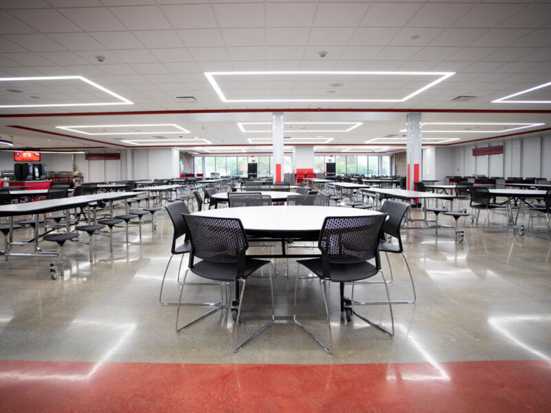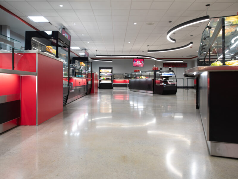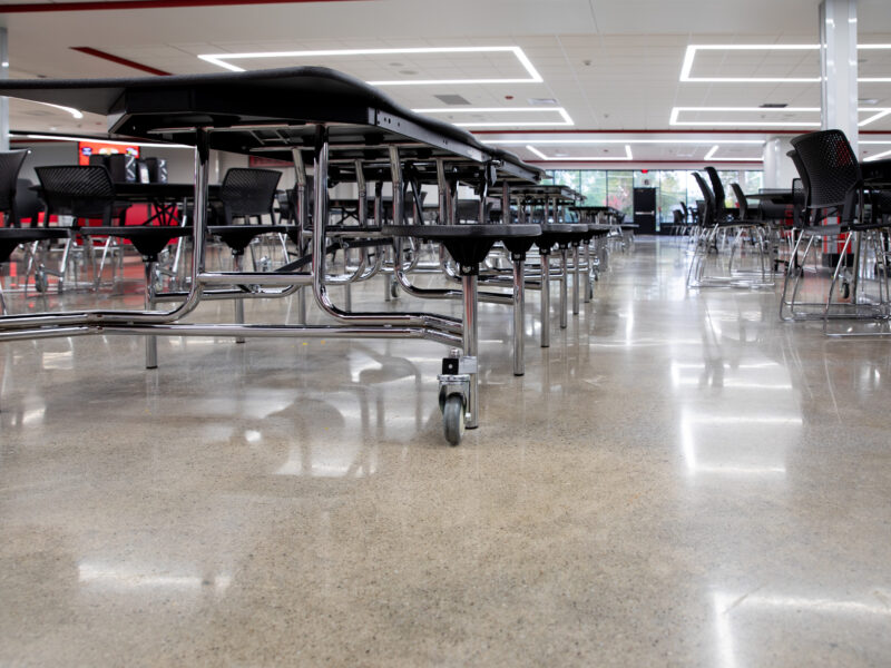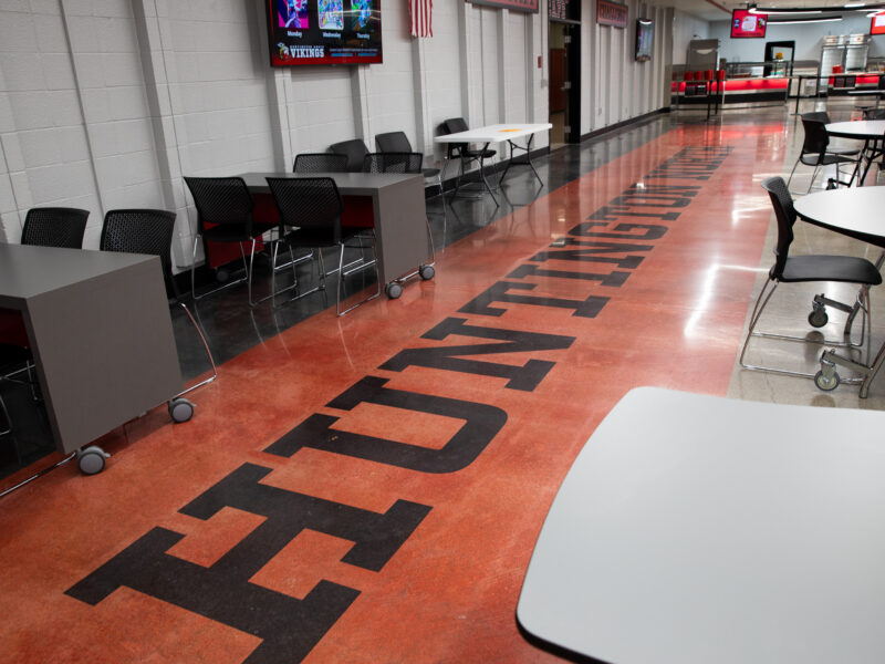 Huntington North High School of Huntington County Community School Corporation renovated their building over the summer and updated the school’s cafeteria with a polished concrete flooring system. Dancer Concrete Design installed our StrongTread Polish – Remodel polished concrete system for the 12,000-square-foot cafeteria floor.