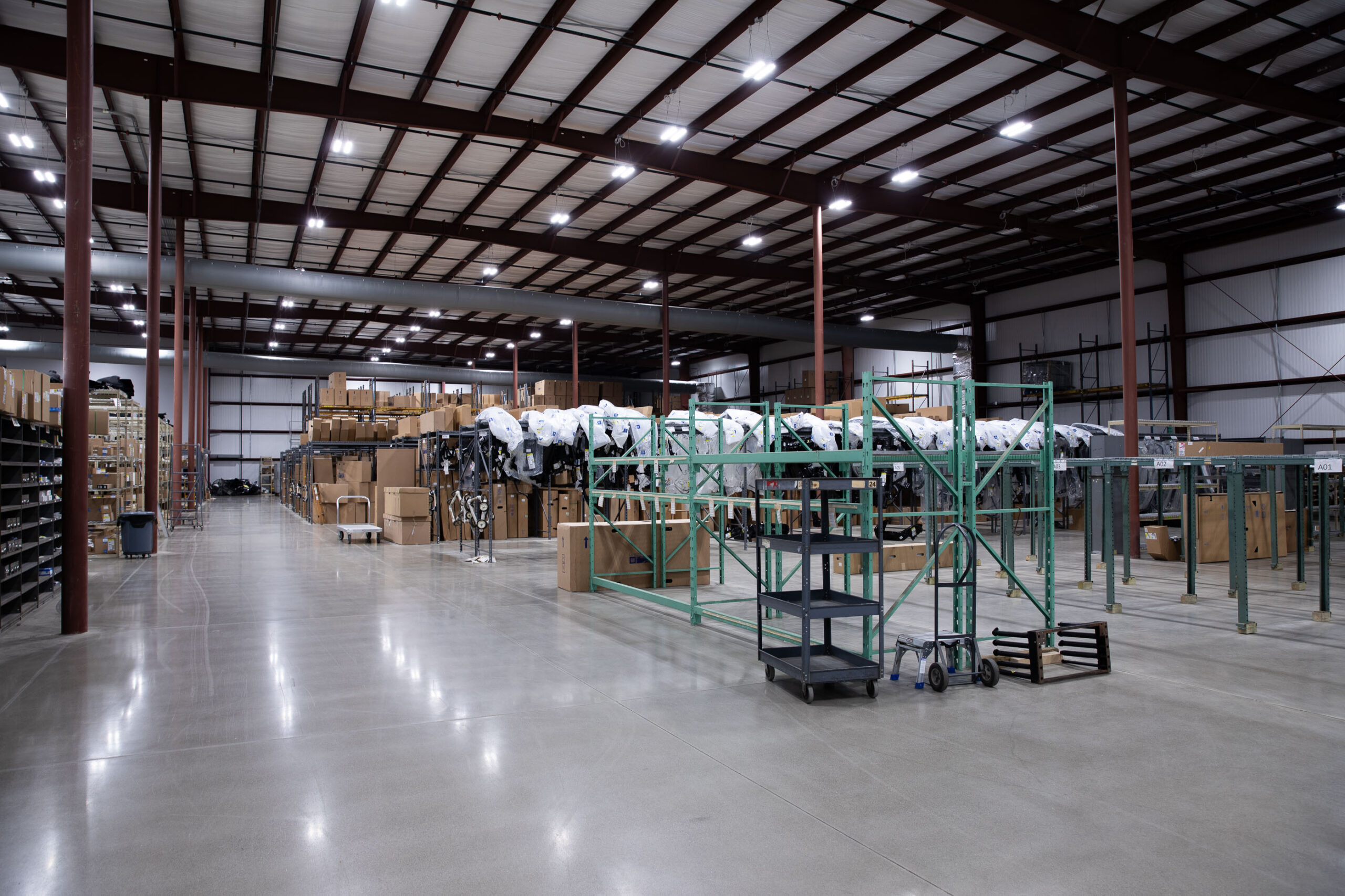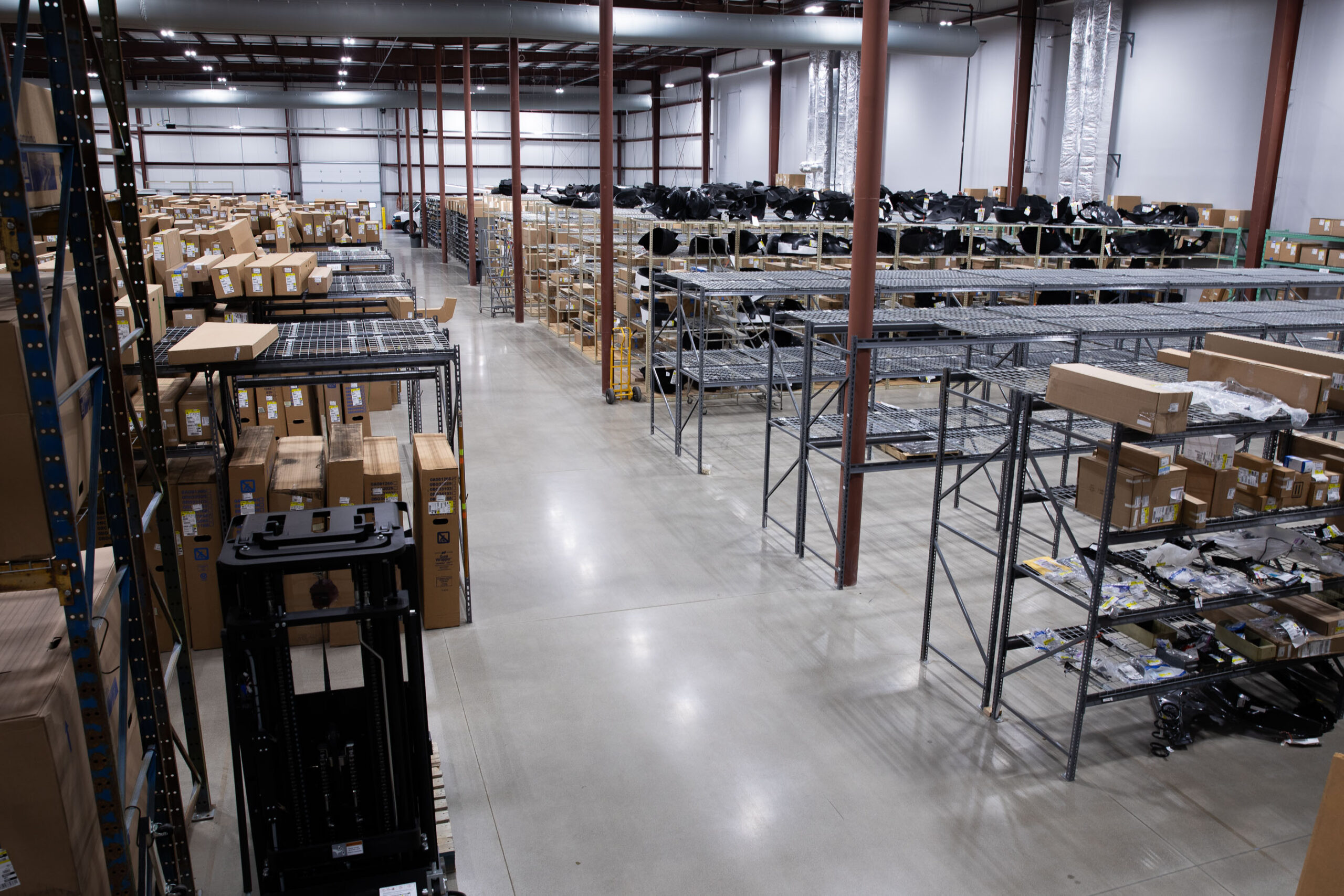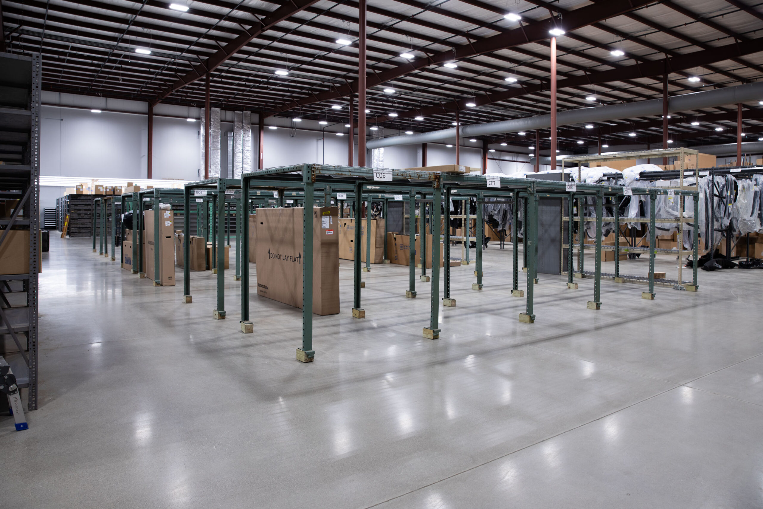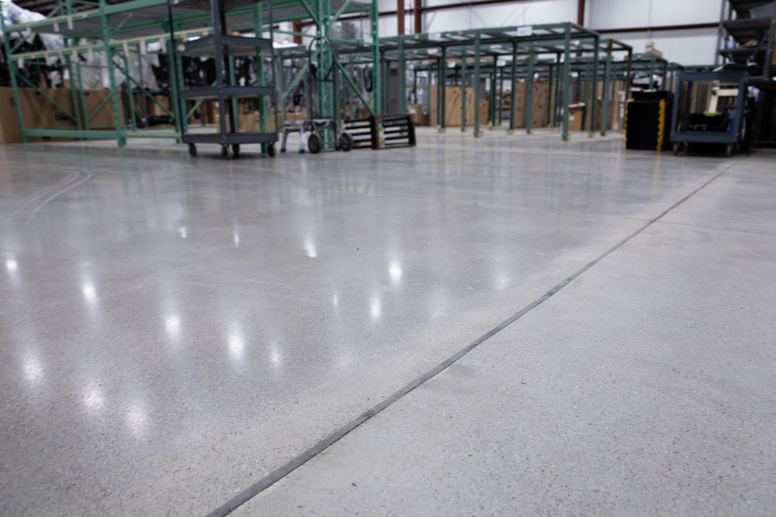 Midwest Auto Parts, a supplier of Genuine General Motors parts, expanded their footprint with a new warehouse in Fort Wayne, Indiana. Dancer Concrete Design polished over 40,000 square feet of new concrete with our salt-and-pepper StrongTread Polish – Classic system. The floor was mechanically ground and polished with our power trowel. Densifiers and stain guards were then applied to create a durable finished floor. The polished concrete in the warehouse will serve foot and vehicle traffic for decades to come.