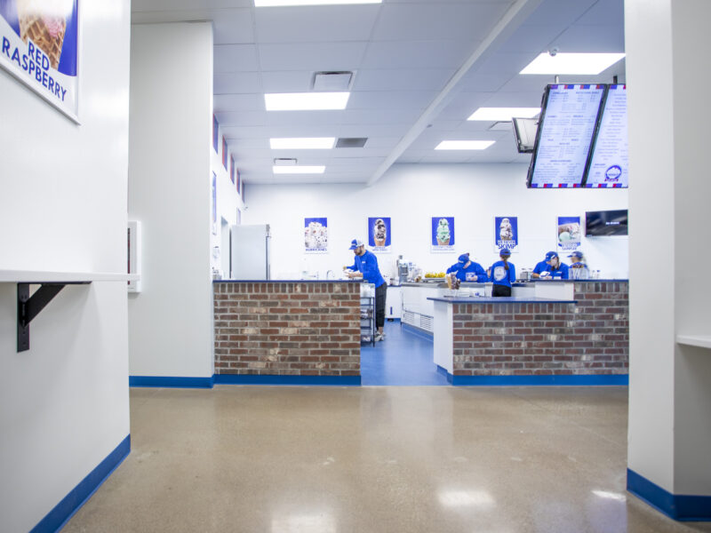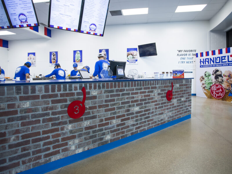 Dancer Concrete Design installed 750 square feet of our StrongTread Polish – Remodel concrete system in Handel’s dining room. We filled about 110 linear feet of control joints during installation; filling control joints provides an easier-to-clean surface, protecting the joints from future damage, and providing a smooth and finished joint in the floor. Our Remodel system brings fresh life to an older concrete floor and protects the surface with durable products. The results are a sweet finished floor that will serve customers for years to come.