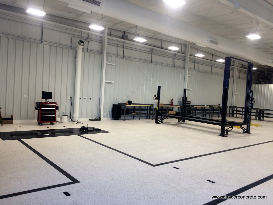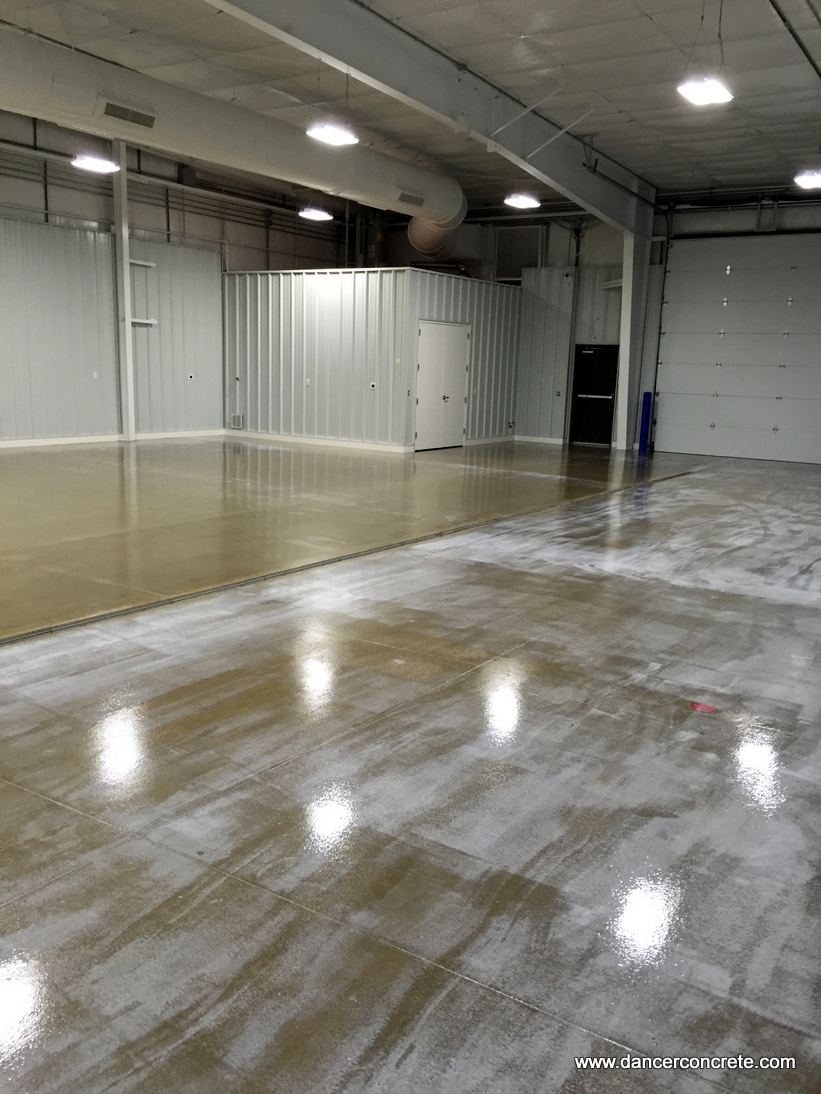 When the Dancer Concrete team finished the work, we left our clients with a custom designed and dyed display room and a durable and slip resistant work area. Both of which will last for years to come.