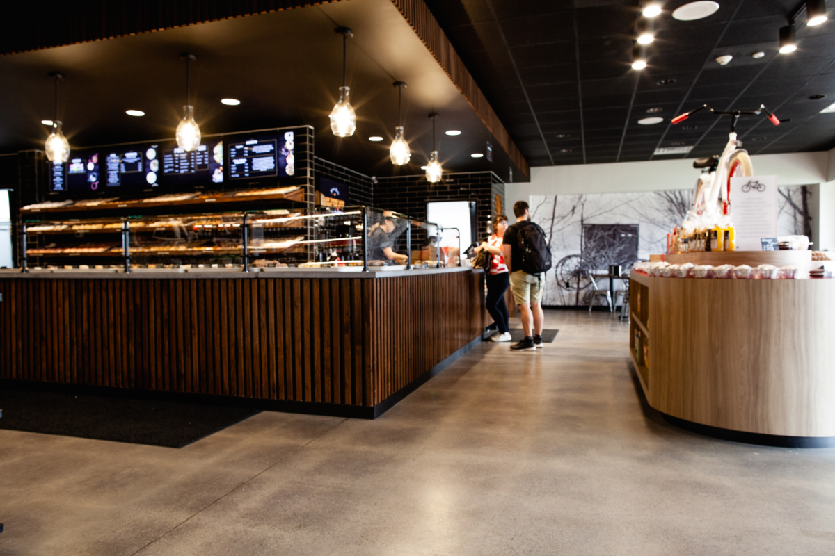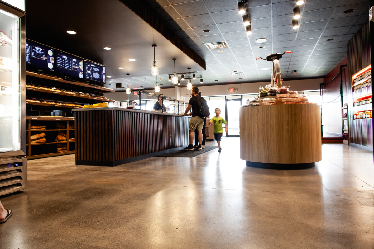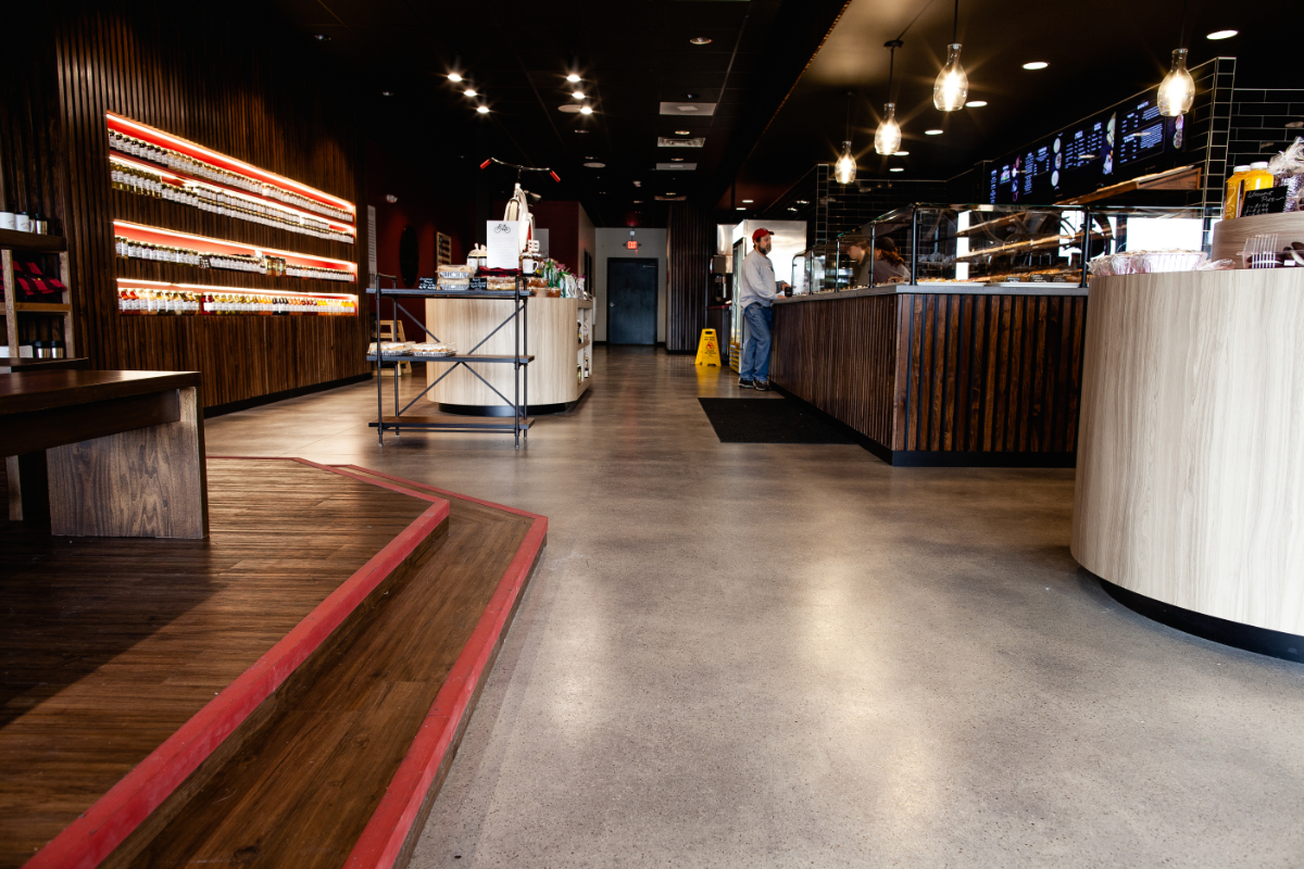 Rise’N Roll needed a finished concrete floor that was efficient and got the job done. It needed to be quick to install, durable for retail foot traffic, budget-friendly, and welcoming. Our StrongTread Saver was the perfect option. It gives the look of a polished concrete floor and is faster to install. It seals the floor to prevent dusting and helps to make a space feel complete.