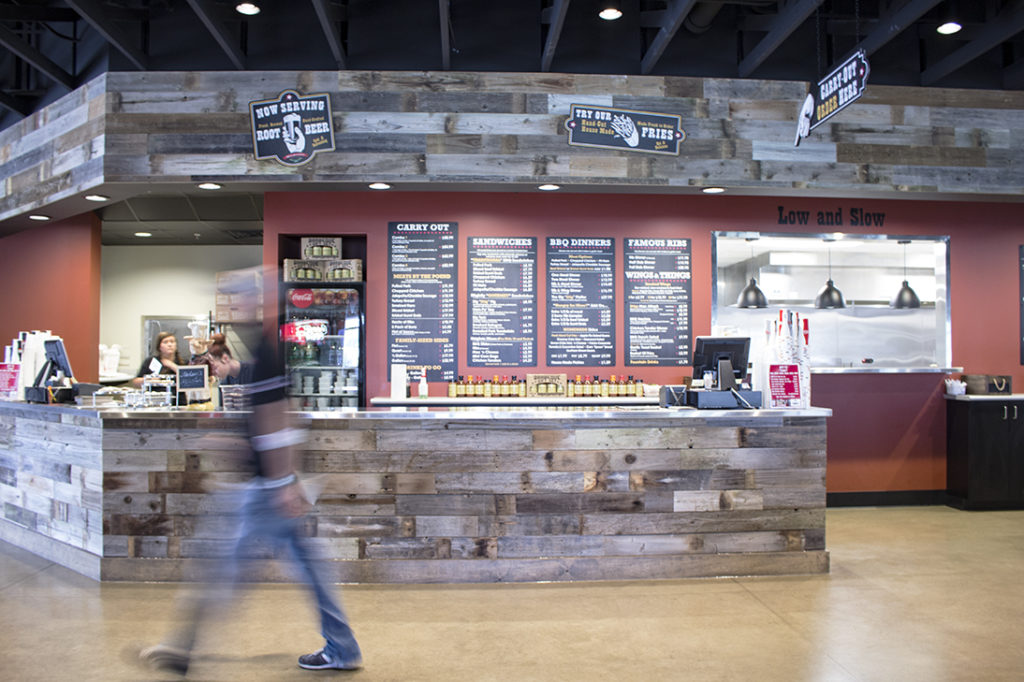 The new Shigs In Pit location on Maplecrest Road in Fort Wayne, Indiana can boast about more than just their fantastic food. Their new space is top-of-the-line with a casual and welcoming style. Much of their space leans into the industrial side of things while still holding onto some great features of the rustic style including their reclaimed wood wall accents and corrugated metal wall coverings. This space includes durable and easy-to-clean surfaces which, the designers at Kelty-Tappy know, are a must for any restaurant.