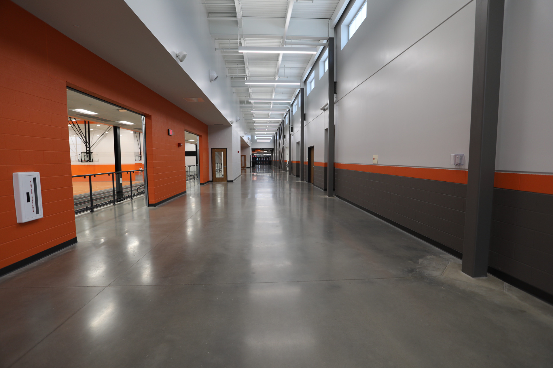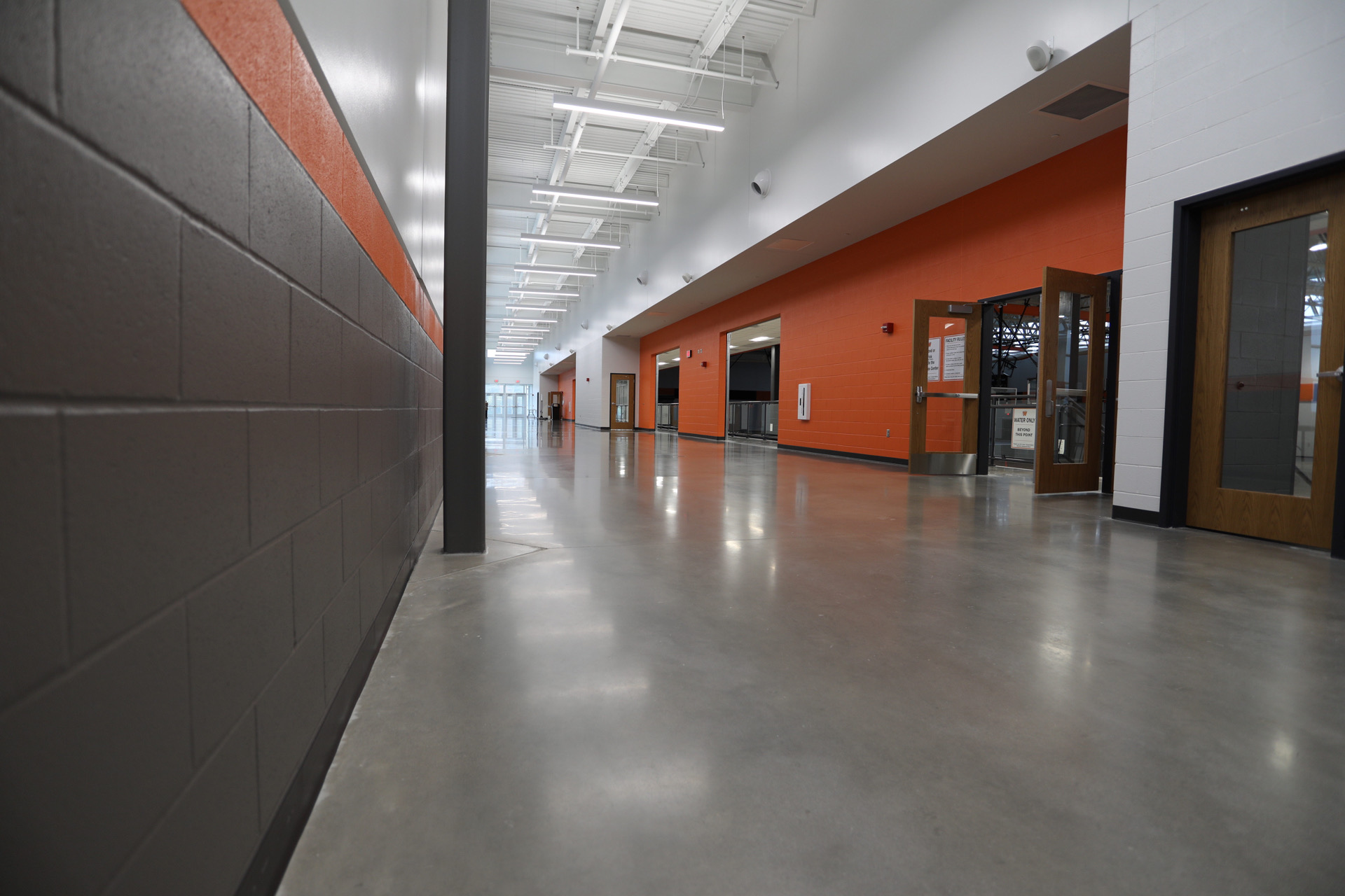 Warsaw Community High School was looking for an affordable installation that balanced aesthetics and offered improved durability over traditional sealed concrete in their 10,000 square-foot addition. Our StrongTread Polish — Modern flooring system was specified for the application in the main corridors connecting this new gymnasium wing to the current high school.
